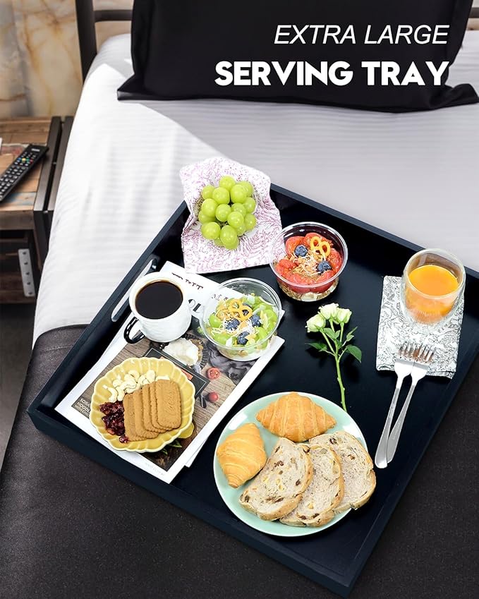 - SMOOTH ERGONOMIC HANDLES - Our square tray is designed with smooth, ergonomic handles for a comfortable grip. The cutout handles provide ample space, making it easy to carry items between rooms.