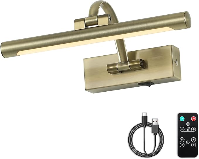 - Adjustable Lighting Diretion: With a 180° swing arm and a 270° rotatable lamphead, the battery picture light can easily disperse the light where you want. The art light is a great lighting addition to your indoor home decor