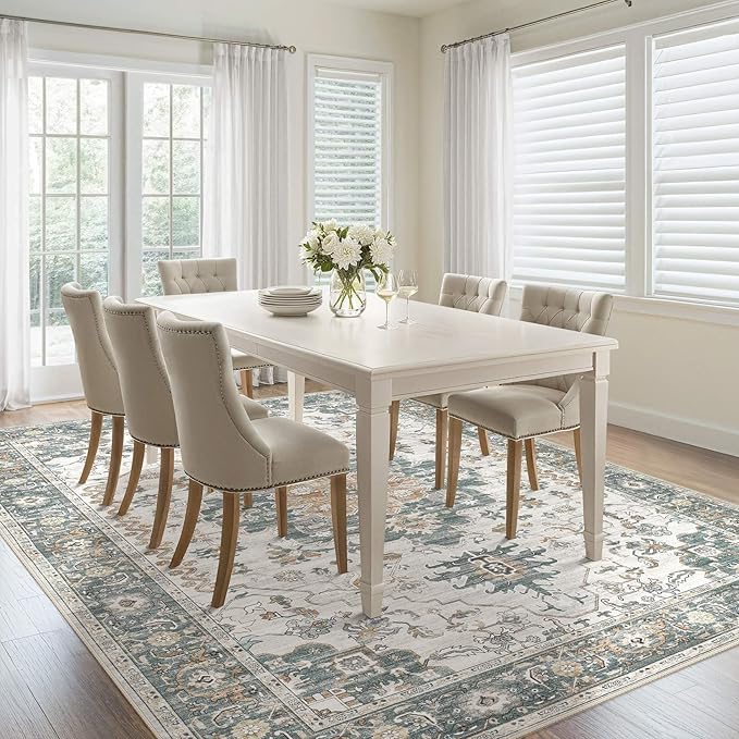 Washable Area Rugs for Living Room - 5x7 Neutral Vintage Distressed Floral Farmhouse Boho Large Soft Floor Rug Indoor Non Slip Carpet for Living Room Bedroom Dining Room Office - Green/Grey