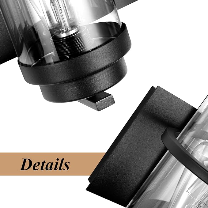 - Product Feature: Hardwired.Matte black bathroom light fixture with clear glass shade;Industrial Wall Sconce lighting is easy to install and can be mounted as either up light or downlight.