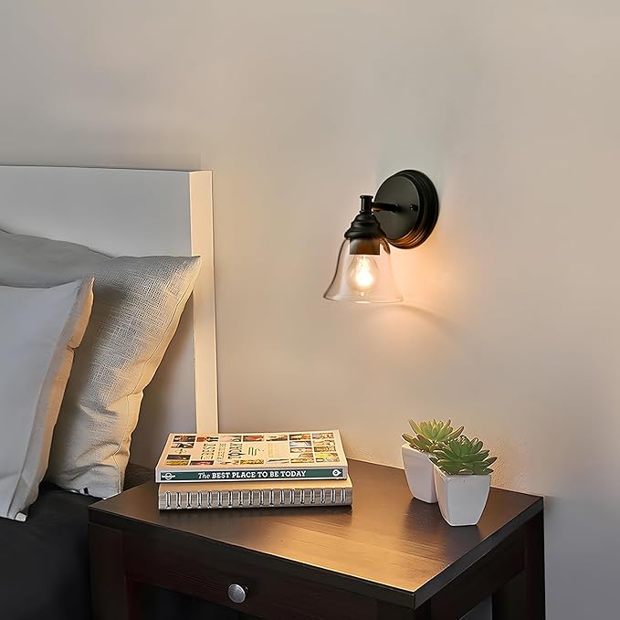 - Compatible with E26 Bulbs: This black clear glass wall sconce is compatible with all E26 base bulbs, including LED, incandescent, Edison, energy-saving, and halogen bulbs (up to 60W, bulbs not included).