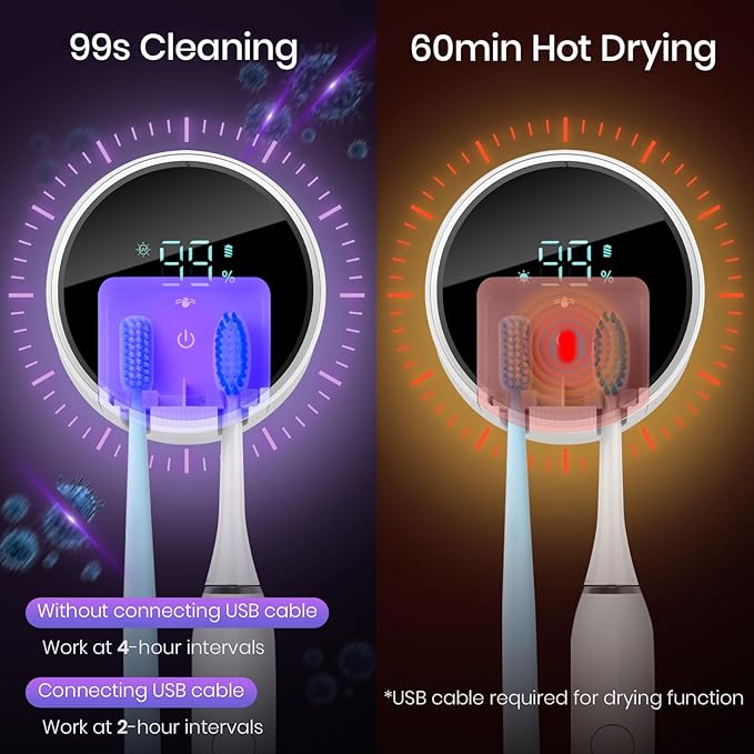 Toothbrush Holder and Cleaner for Bathroom,Minimalist Desktop and Wall Mounted Electric Toothbrush Razor Holder, Automatic Open Close Cover, Clean, Dry for Home Business Travel