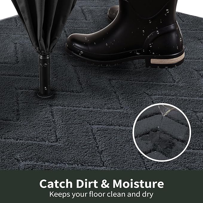 - Catch Dirt & Moisture: Made of soft and absorbent fiber, it effectively trap moisture and debris from wet shoes or muddy paws, keeping your floors clean dry, and safe—especially on rainy or snowy days. We recommend choosing the largest mat that fits your space