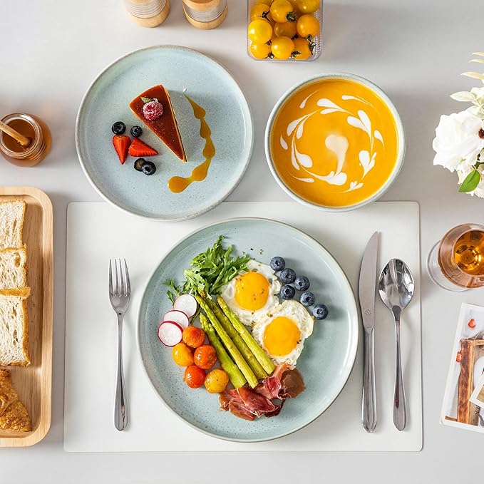 - 【Durable & Scratch-Resistant Stoneware】Made from high-fired stoneware, this set is strong, chip-resistant, and built to last. It resists wear and tear from daily use while maintaining its elegant appearance over time.