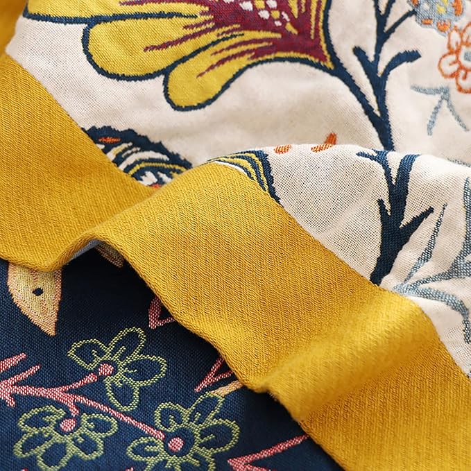 Boho Muslin Blanket for Adults 4-Layer Gauze Twin Size Soft Cozy 100% Cotton Summer Cooling Blanket Floral Decor for Sofa Bed Coverlet Both Sides (Boho Floral, Twin 60 x 80 in)