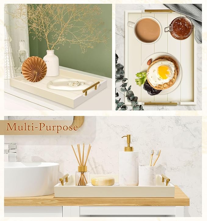 - 【WHO DOESN'T LOVE HANDCRAFTS?】Have to say our rectangle white wood serving tray is so functional and stylish at the same time. Every paint process is completed by our hard workers, who aim to make each beautiful tray to prevent splinters, paint chips, and scratches. It's lightweight but sturdy enough to be used as a coffee table tray for the living room.