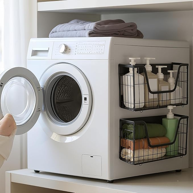 - Steady Dual Magnets: each storage basket features dual reinforced magnets that firmly attach to any metal surface, such as refrigerators and metal shelves, without the need for additional support; With a weight capacity of up to 15 pounds, it can easily store a variety of items, including fruits, vegetables, canned goods, snacks, spices, laundry pods, and more